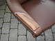 Chair in brown leather with brazilian rosen wood on armrest designed by Illum Wikelsø