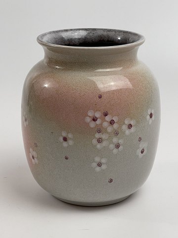 Fin, delikat keramik vase med kirsebærblomster fra Østtyske Strehla keramik.