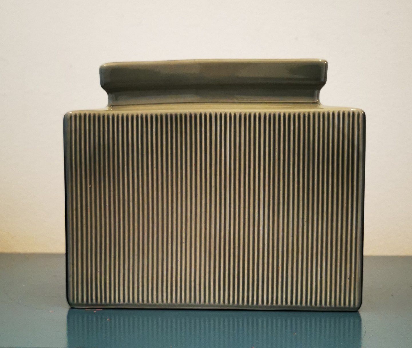 Four-sided "Family" vase in ceramic from the Søholm factory on Bornholm. Motif with child learning to walk. Designed by Svend Aage Holm-Sørensen in the 1950s. Appears in perfect condition. No damage or repairs. Facotory mark and artist signature on the bottom. Measurements: 15½ cm high (6.10 inches) 18 cm long (7.08 inches) and 7½ cm wide (2.95 inches).