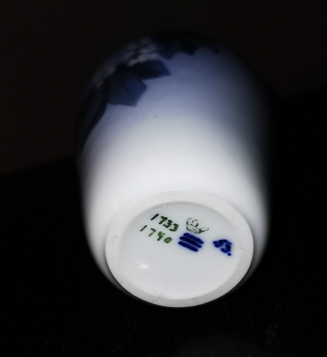 Charmerende vase i porcelæn med blomsterdekoration fra 1920'erne. Fremstår i perfekt stand uden skader eller reparationer. 1. Sortering. Fabriksmærket på bunden. H. 10 cm.