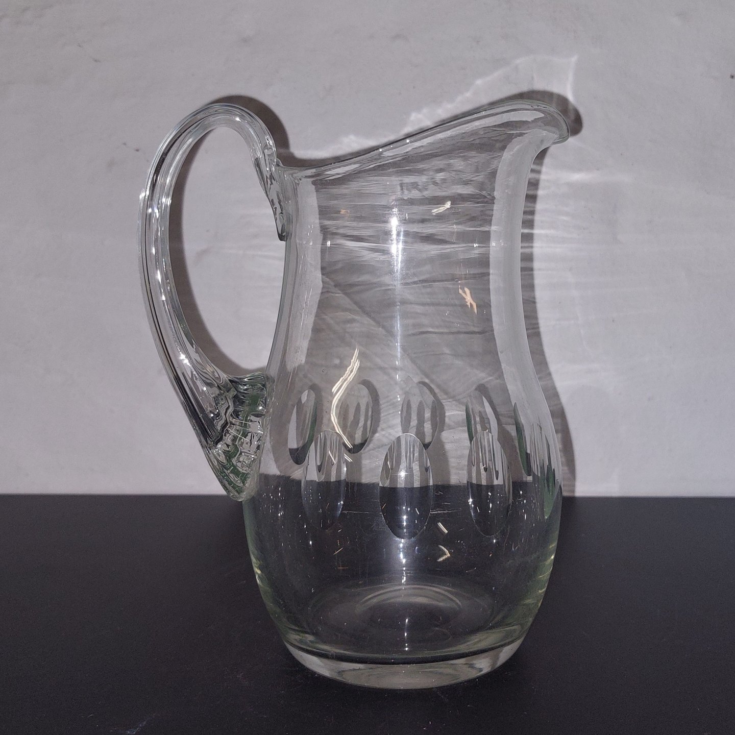Kande I glas med sneglehank. Fremstillet på dansk.glasværk omkring 1920. Fremstår I god stand uden skader eller reparationer. H. 19,5 cm