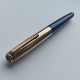 Blå Parker 51 fyldepen med guld double hætte. I god stand. Klar til at blive brugt. Ingen skader eller reparationer. L. 14 cm.