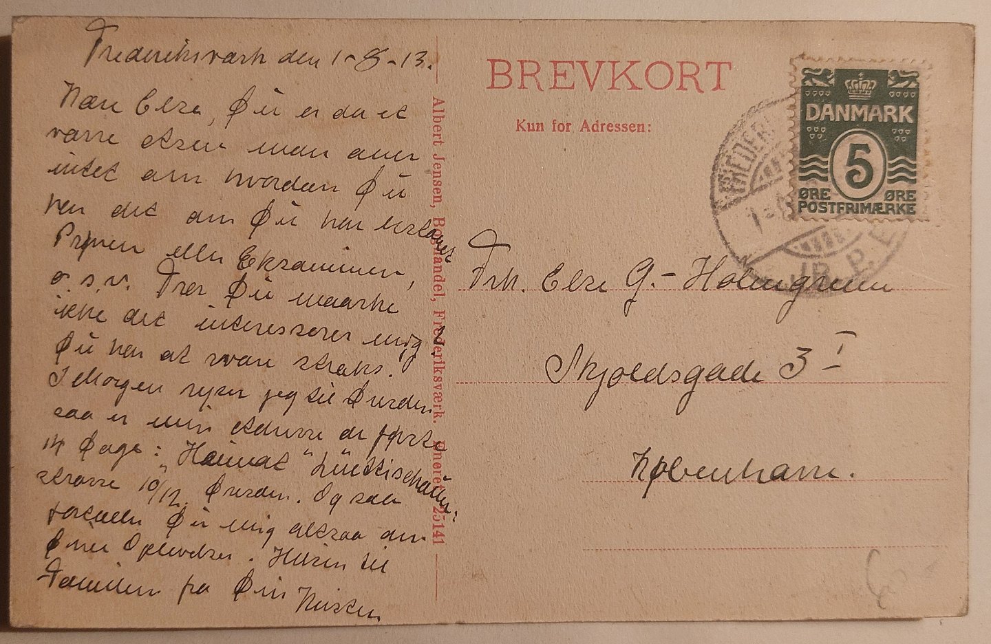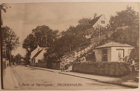 Postkort: Parti af Nørregade I Frederiksværk. Annulleret I 1913. I god stand