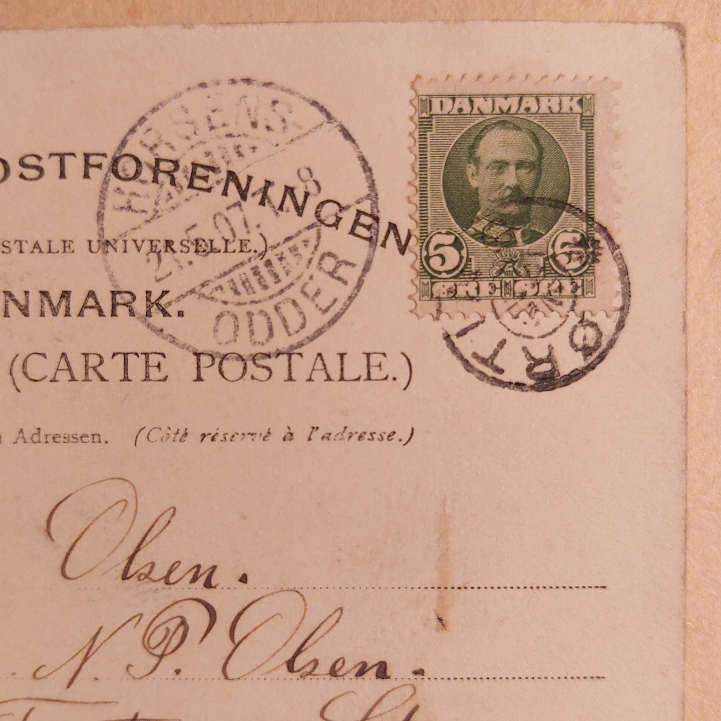 Postkort: Motiv fra Ørting. Annulleret Stjernestempel ØRTING i 1907. Sidestempel HORSENS. I god stand