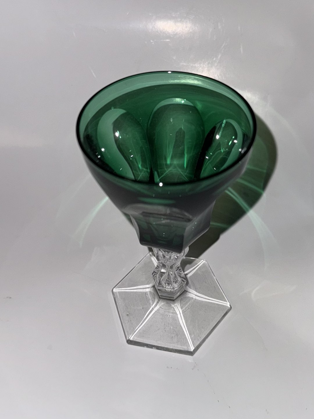 Grønt "Lalaing" vinglas fra Holmegaard. Alle i god stand. Ingen skader eller reparationer. Fra første halvdel af 20. Århundrede. H. 13 cm.