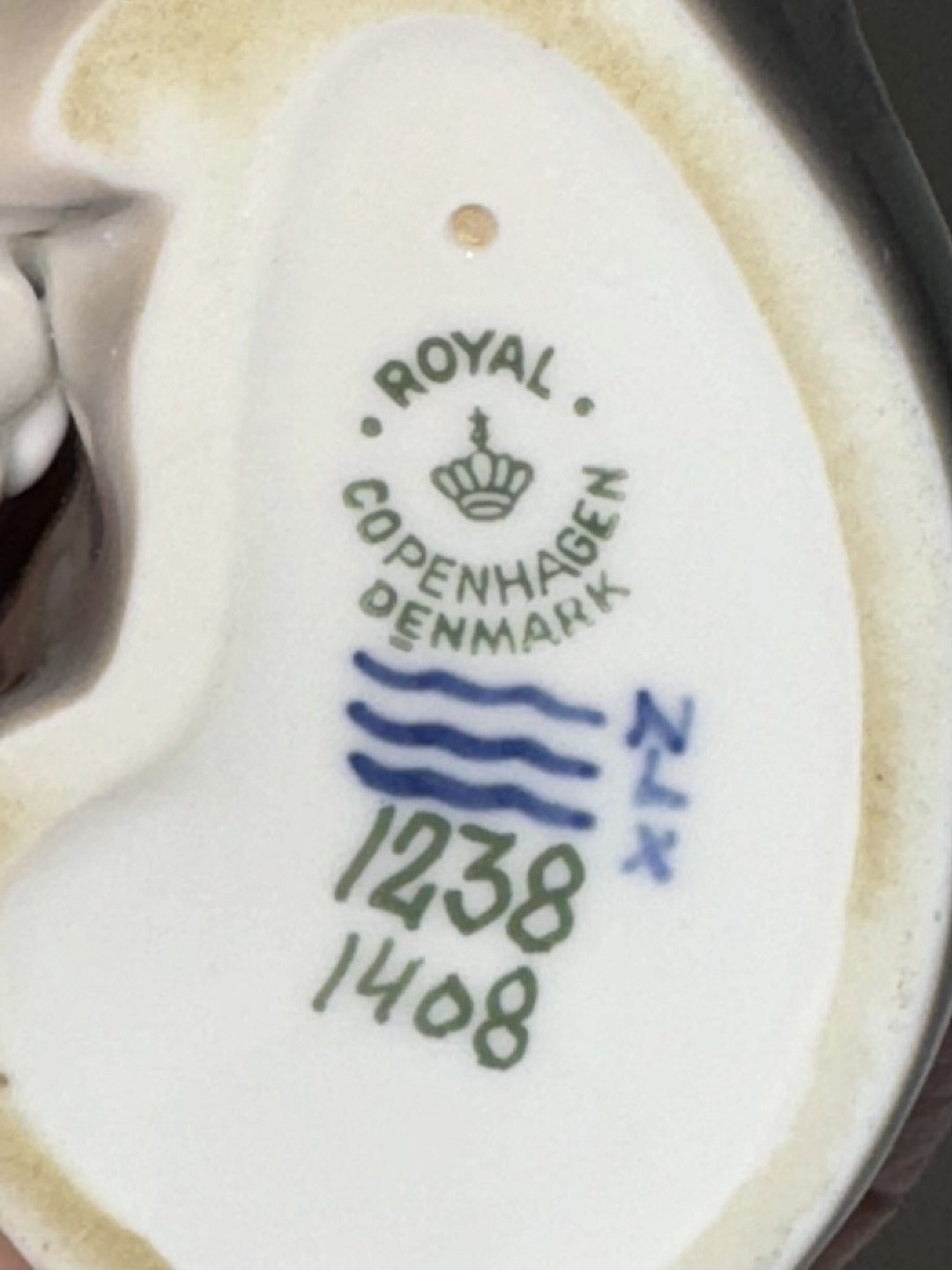 CHARMERENDE FIGUR AF LILLE HUND: Royal Copenhagen, Gravhund. Designet af Oluf Mathiesen. Modelnummer 1408, 1. sortering. Fremstår i god stand. Fabriksmærket på bunden. 11 cm lang.