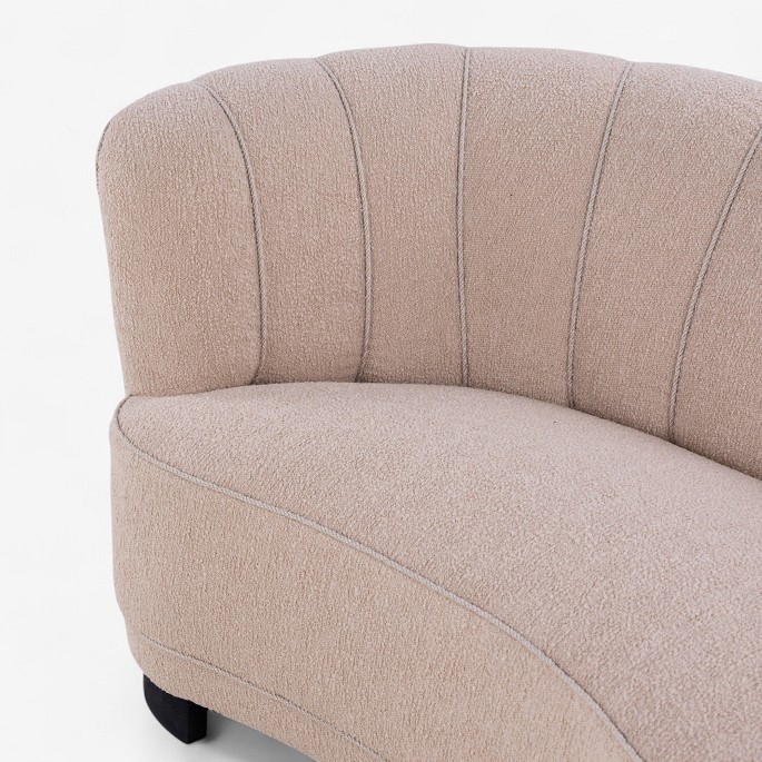 Newly upholstered 'Banana sofa' in 'Teddy' fabric (color: Nude).