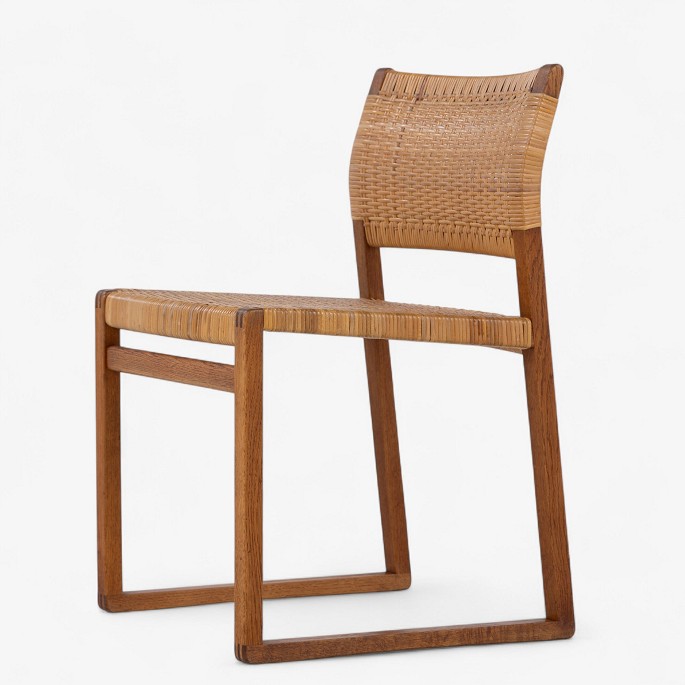 BM 61 - Set of 4 dining chairs in oak and patinated wicker.
