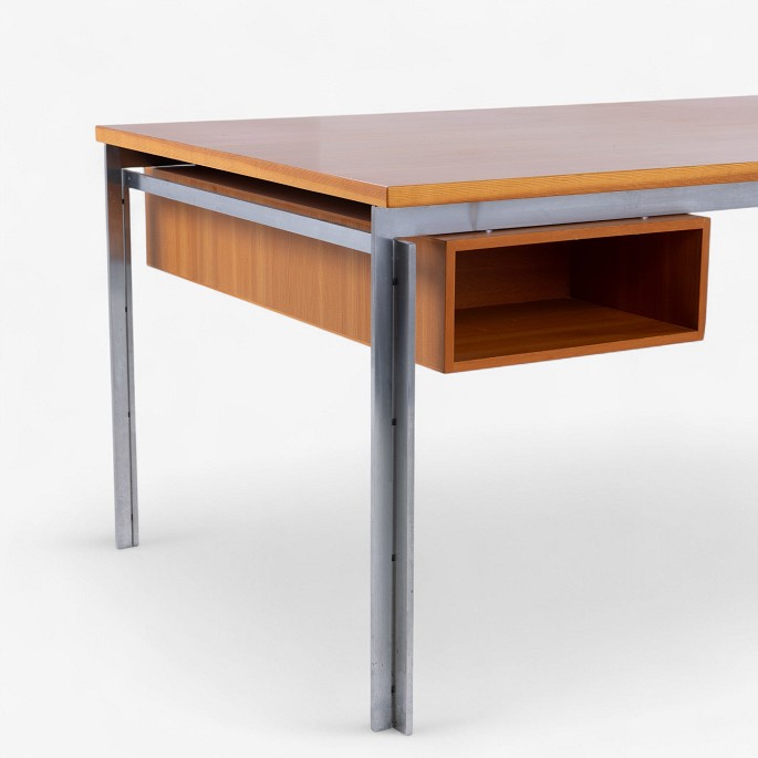 PK 55 - Work table/desk with top and drawer module in Oregon pine and steel frame. From 1985. Manufacturer's mark.