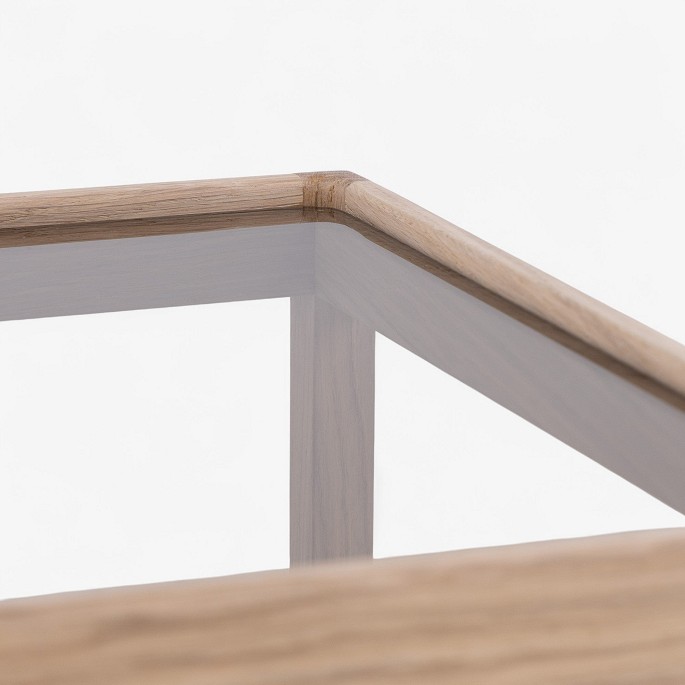 'Cube table' with light oak frame and smoked glass top.