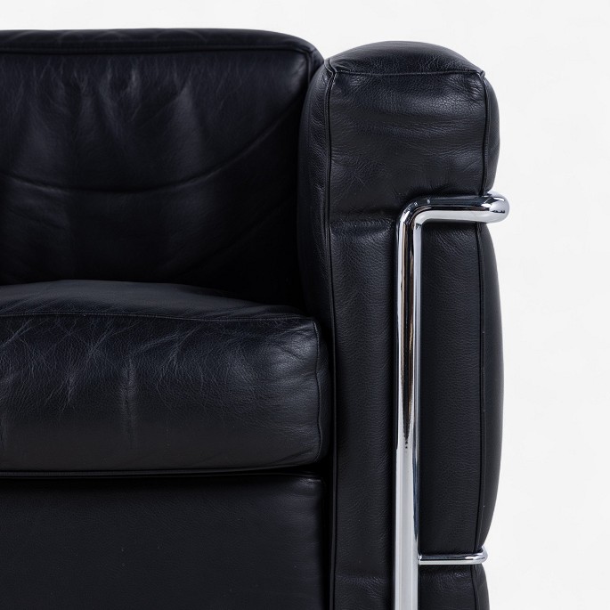 LC 2 - Armchair in original black leather with steel frame. Manufacturer's stamp.