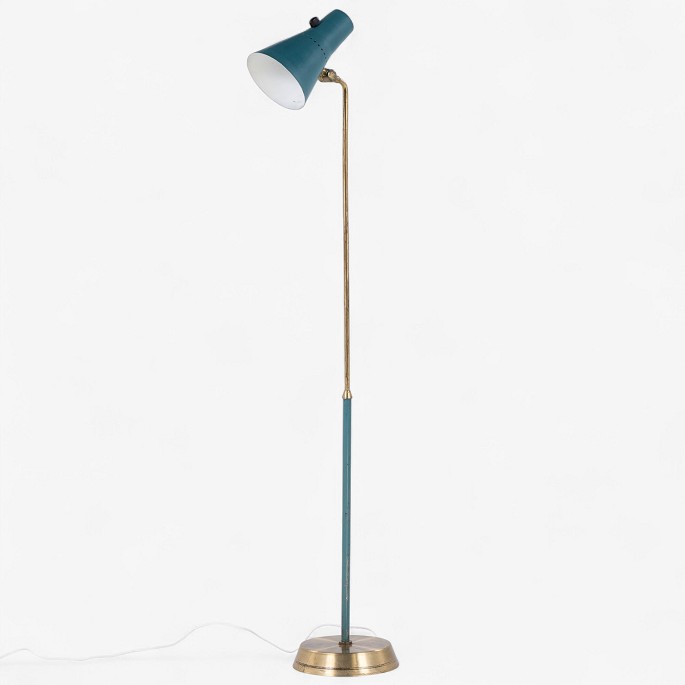 Model KLK 2851 - Floor lamp in patinated brass and green lacquered metal.