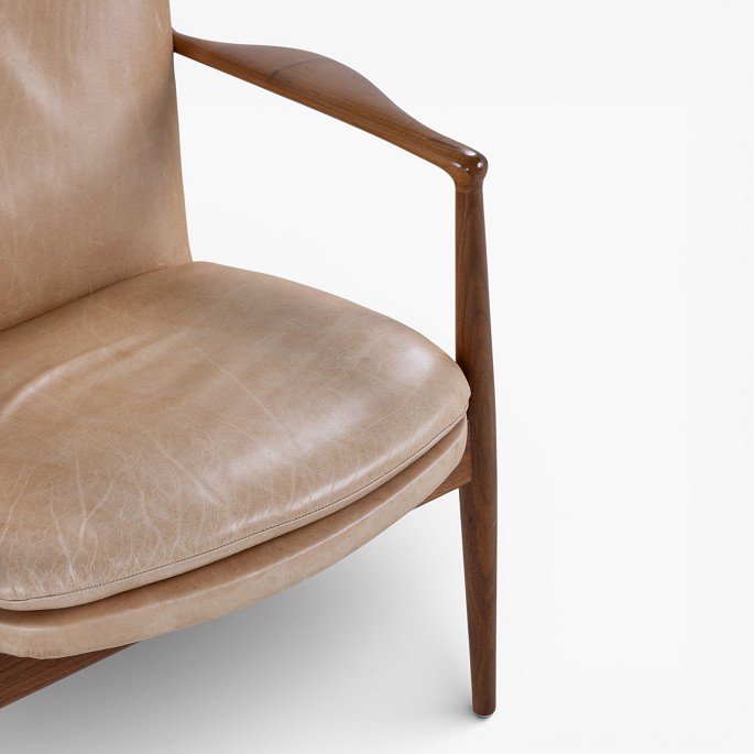 FJ 51 - Pair of 'Delegate Chair' armchairs in walnut and patinated natural leather. Designed in 1951.