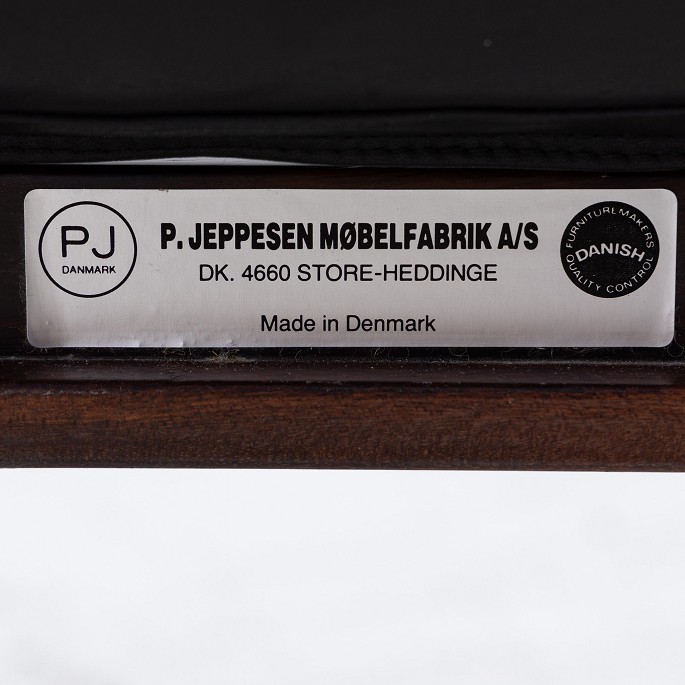 PJ 149 - 'Colonial Chair' armchair in rosewood with cushions in patinated black leather. Manufacturer's mark.