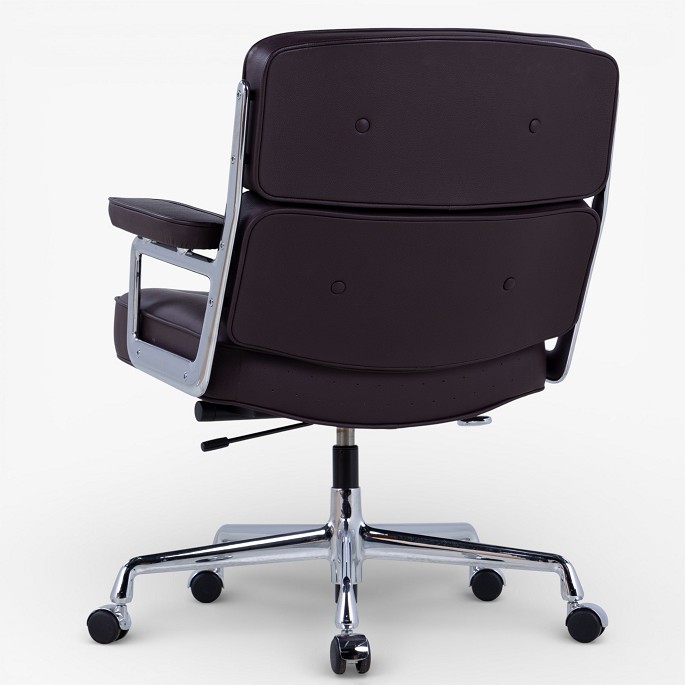 ES-104 - Office chair in dark brown leather with armrests and steel frame with height adjustment. Manufacturer's mark.