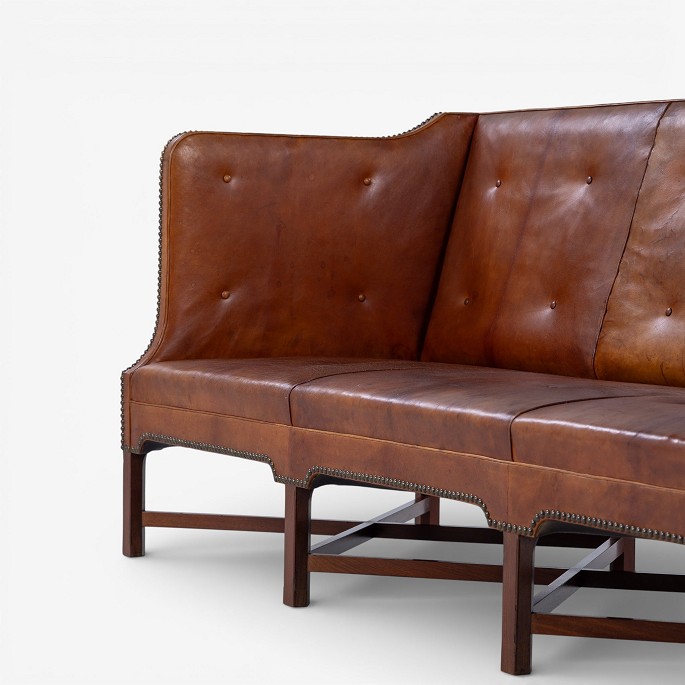 KK 4118 - 3-seater sofa in patinated niger leather on a cross-frame in Cuban mahogany. Designed in 1930.