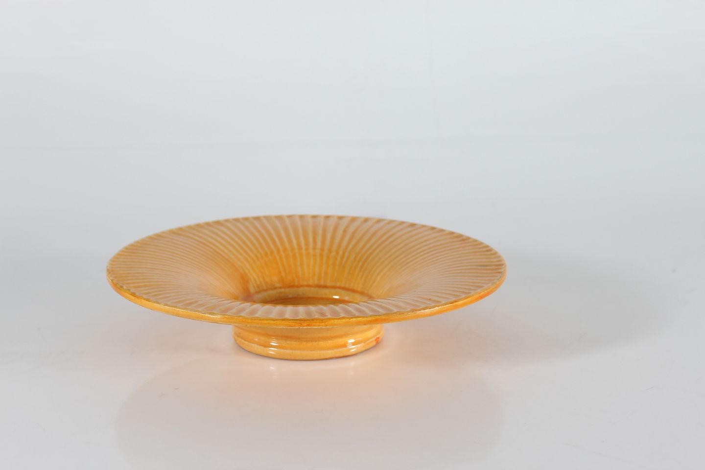 Herman A. Kähler Decorative Art Deco dish by Svend Hammershøi decorated with sun yellow uranium-glaze 1930s Sign. HAK + Danmark Height 6 cm Diameter 30 cm Nice condition without chips, cracks or repair