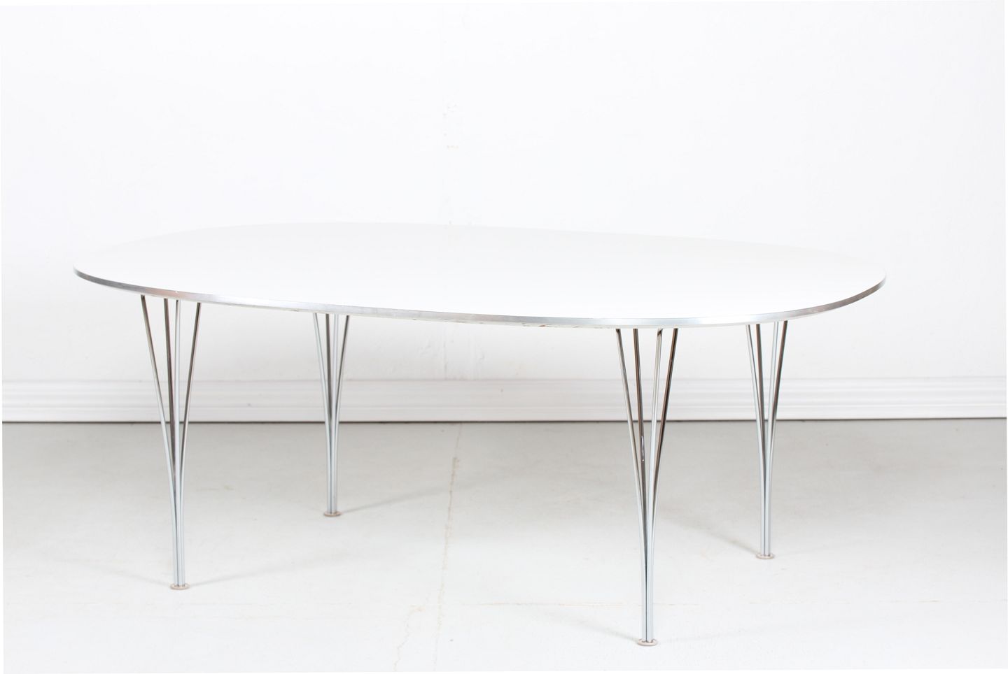 Piet Hein (1905-1996) Ellipse Table made of white laminate with aluminium edge Manufacturer: Fritz Hansen A/S Length 180 cm Width 120 cm Height 70,5 cm Nice condition after normal use