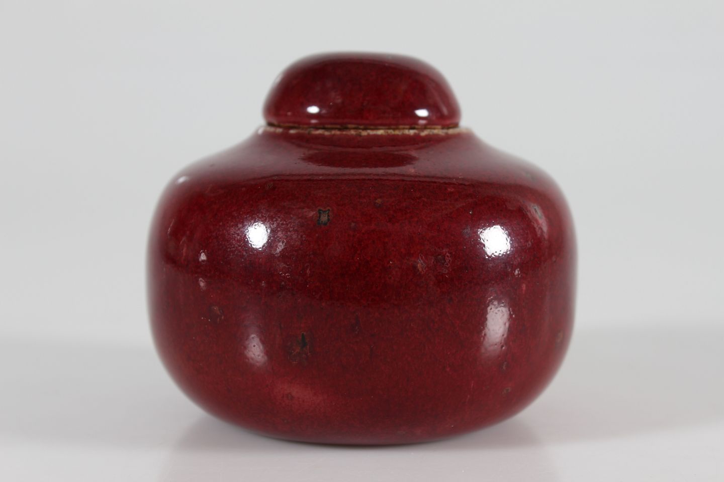 Bing & Grøndahl Valdemar Pedersen (1906-81) Rare small lidded jar of stoneware with glossy oxblood glaze With stamp from the 1950s Height 8 cm Diameter 9 cm Mint condition - 1. quality