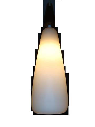 Ceiling Lamp. in råvid glass and teak top. Holmegaard. Around the year 1960