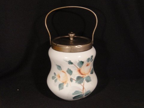 Biscuit bucket opalineglas. and painted roses. Funen Glassworks. price $ 164,-
