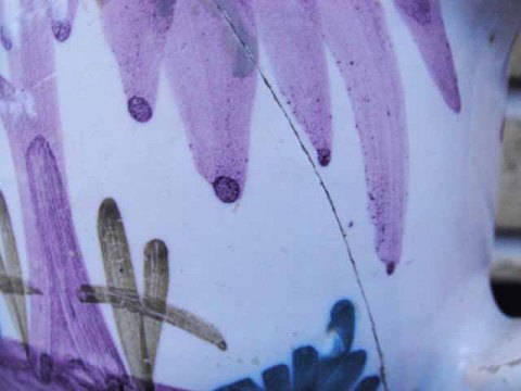Kellinghusen mug with tin lid. (copy) However, this made at another German factory in 1800. Height 22 cm. Diameter: 11 cm.I city Kellinghusen there was a faience from the year 1764 to 1860som was very famous for its earthenware Talerkner, mugs, dishes mm.Her is a lovely mug but with hairline crack in view photos. from another German factory which mimicked Kellinghusen. but in good condition.