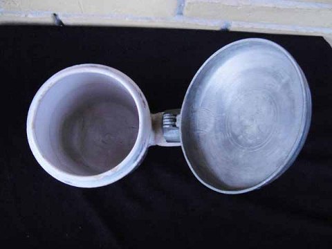 Kellinghusen mug with tin lid. (copy) However, this made at another German factory in 1800. Height 22 cm. Diameter: 11 cm.I city Kellinghusen there was a faience from the year 1764 to 1860som was very famous for its earthenware Talerkner, mugs, dishes mm.Her is a lovely mug but with hairline crack in view photos. from another German factory which mimicked Kellinghusen. but in good condition.