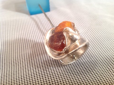 Bernsteinring Jacob Hull mit zwei unpolierten Bernsteinstücke
