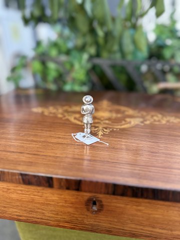 Vintage silver needle container, shaped like a small figure (man in folk costume, from the 19th century H 5 cm W 1.30 cm