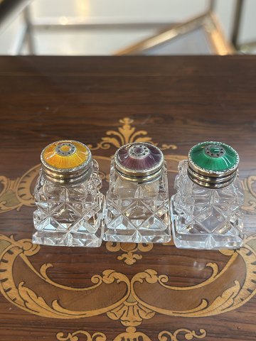 Crystal salt shaker, sterling silver top with enamel, art deco, 1920s, nice and good condition