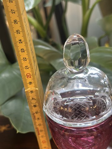 Bohemia crystal jar with lid from the mid-1900s, made of ruby ​​red glass, hand-cut lead crystal, nice and beautiful condition