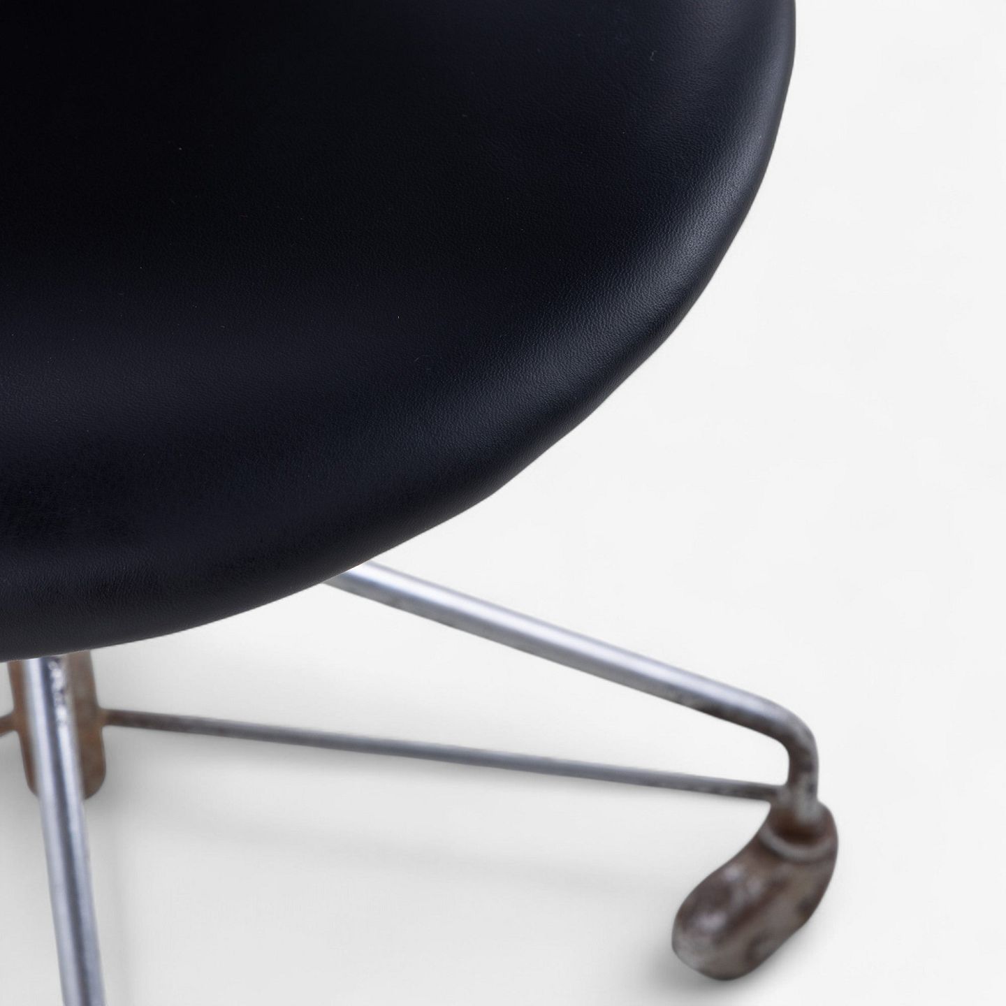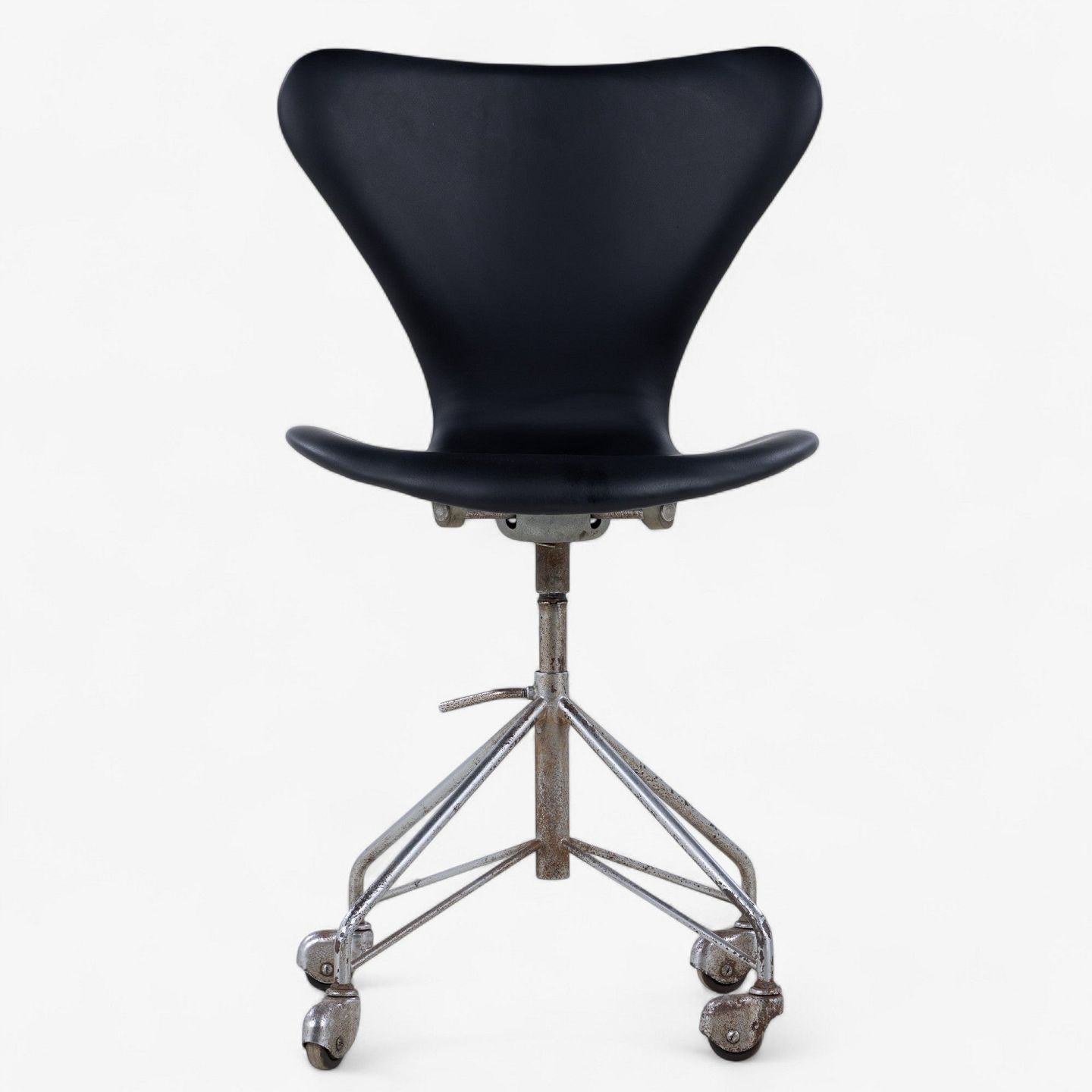 AJ 3117 - 'Seven' office chair in black leather on original patinated frame. Manufacturer's mark.