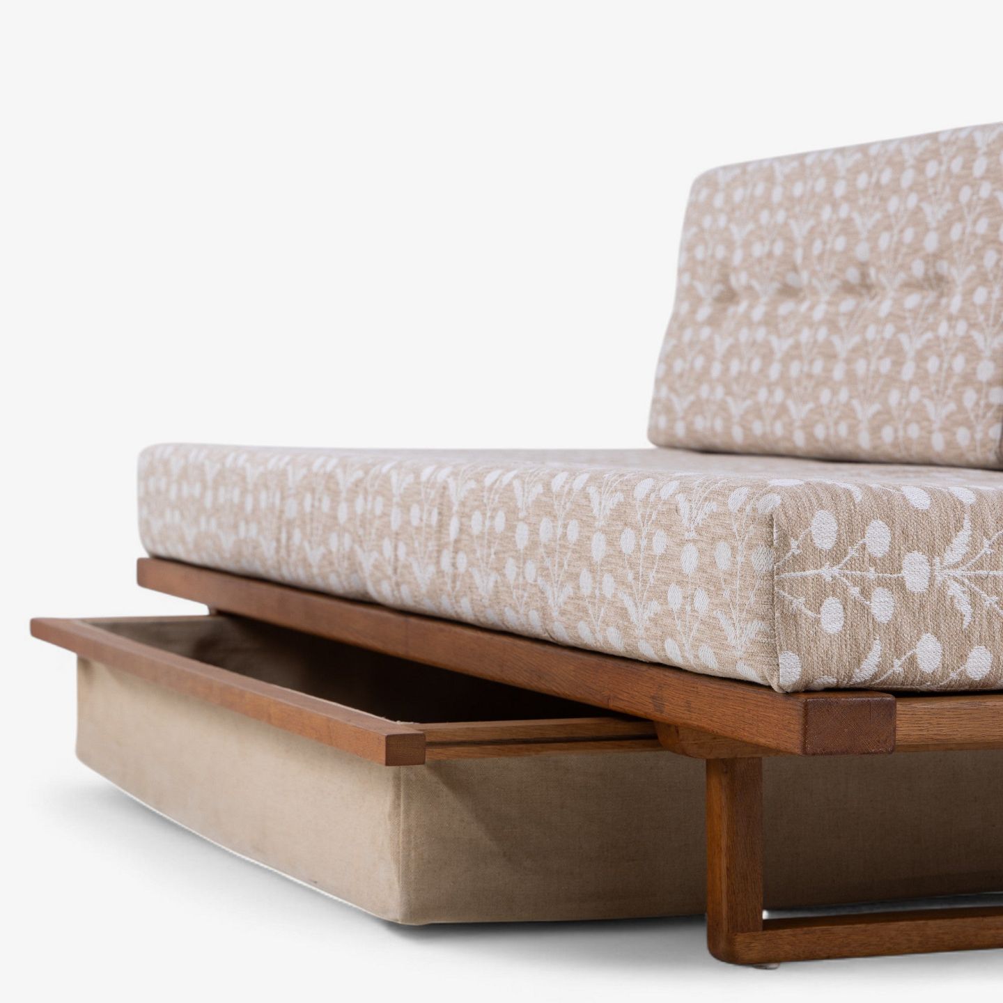 BM 4312 - Daybed in oak with newly upholstered cushions in 'NIRA' fabric (color: 2) from Güell Lamadrid with storage.