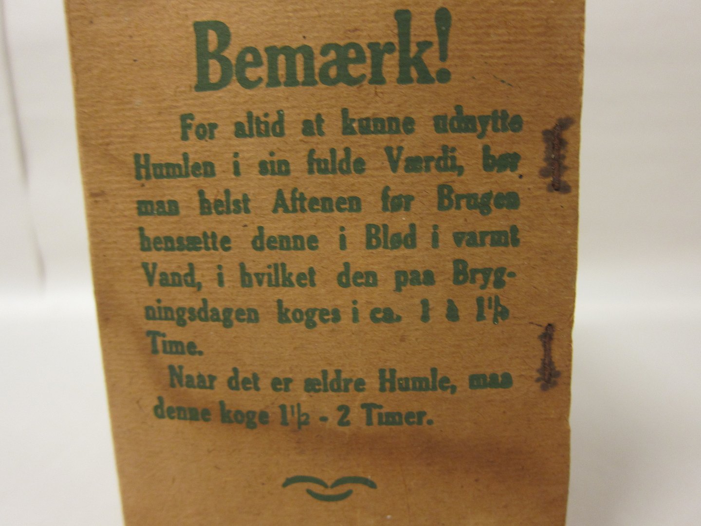 Hops, parcel with hops from "Vestfyns Humlemagasin" (the Hopsmagasin from Vestfyn, Denmark)