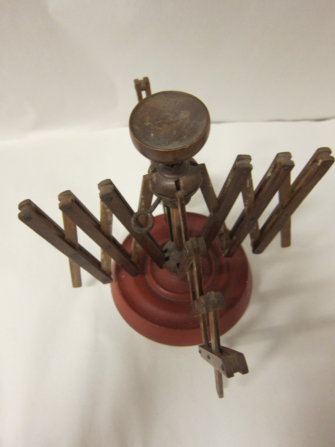 An old, little tool for winding the yarn. Can stay on the table