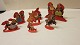 These old christmas figures are made of cardboard and each of them is standing on a piece of curved cardboard