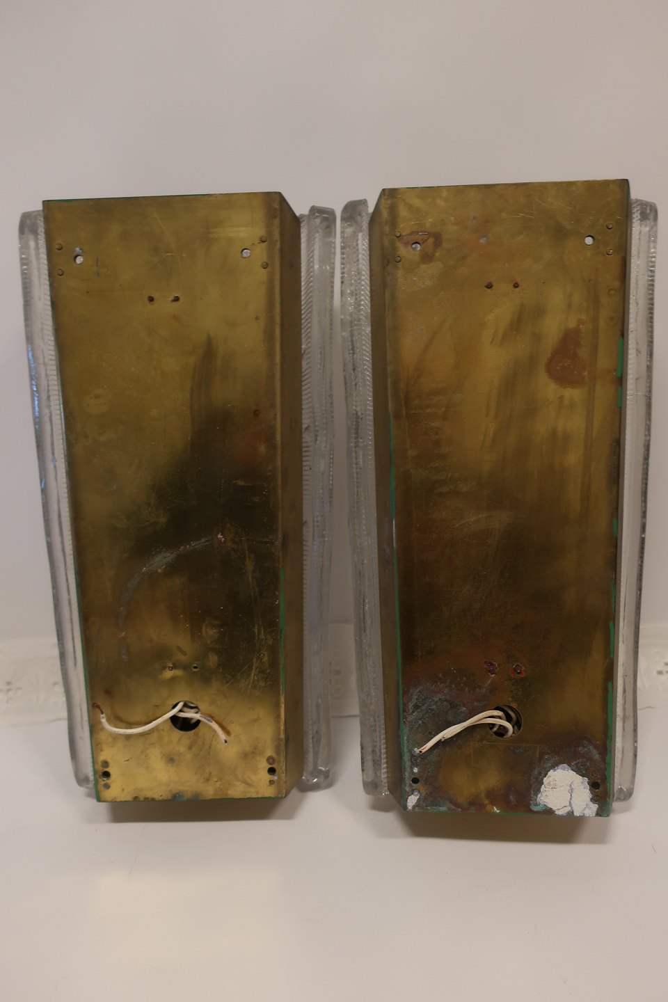 2 wall lamps - Scandinavian - made of pressed glass in a beautiful pattern with the back made of brass