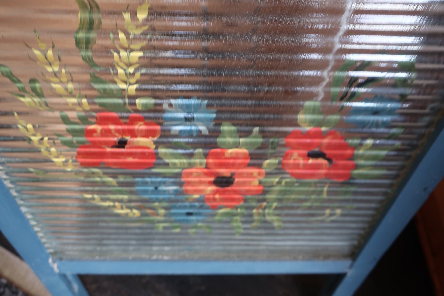 Washboard A blue washboard with painted glas In a good condition Articleno.: 6-11731