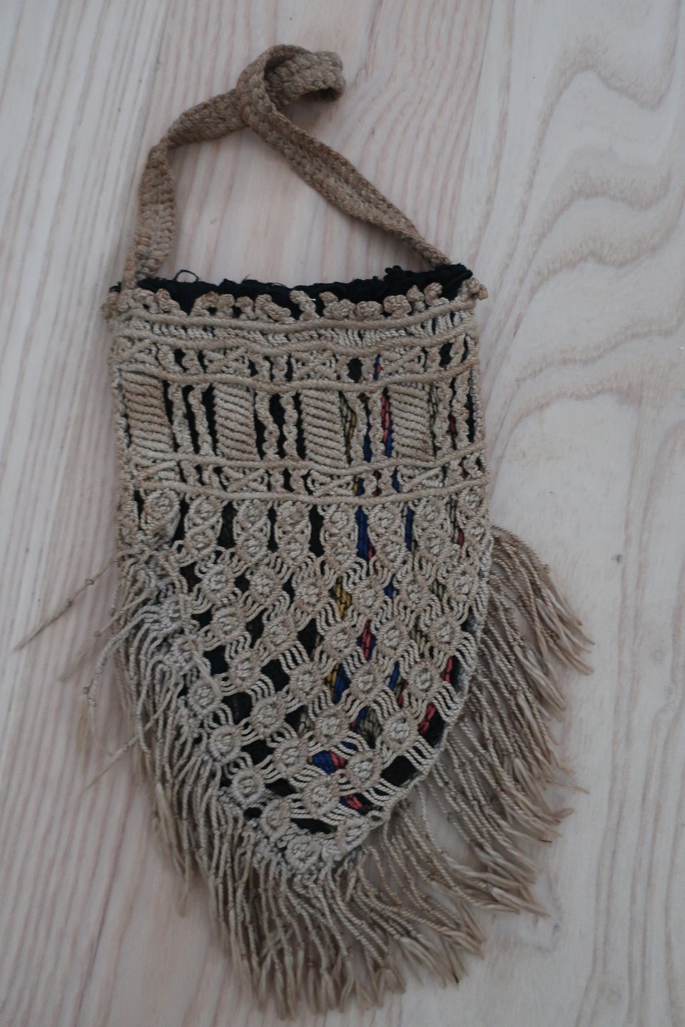 An antique beautiful handbag handmade of flax, and it has the characteristic colour of flax